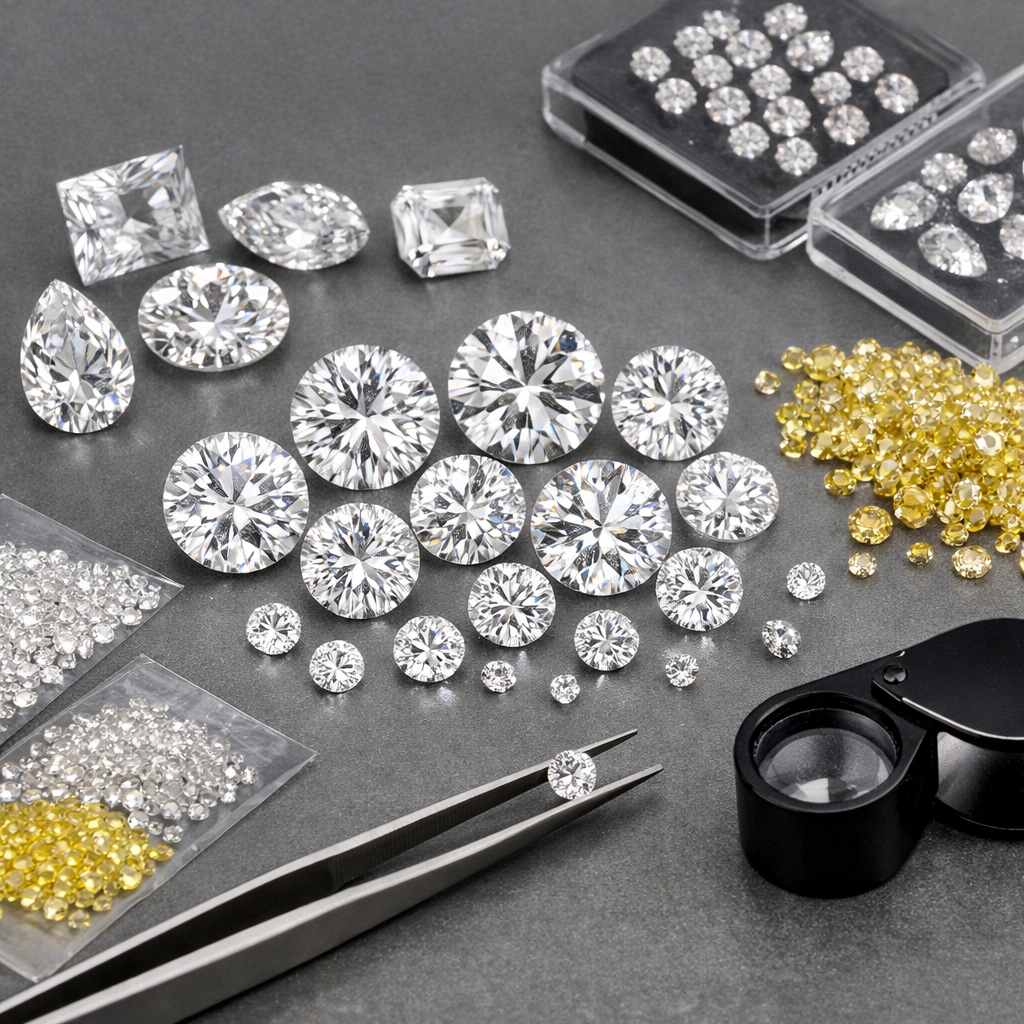 Round and fancy shapes, IF to I3 clarity, 0.01–3 carats. Colors D–M, including Fancy Yellows, Whites, and LB shades for versatile market needs.