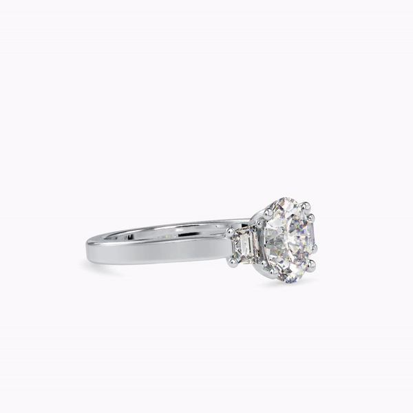 The Eternal Radiance Oval Shape Diamond With Side Baguette Diamond Three Stone Ring isn't just a ring; it’s a symbol. It celebrates your past, cherishes your present, and looks forward to a future filled with promise and love. Each detail of this ring - from the dazzling center oval diamond to the perfectly positioned baguette side stones - has been thoughtfully designed to captivate and inspire.
