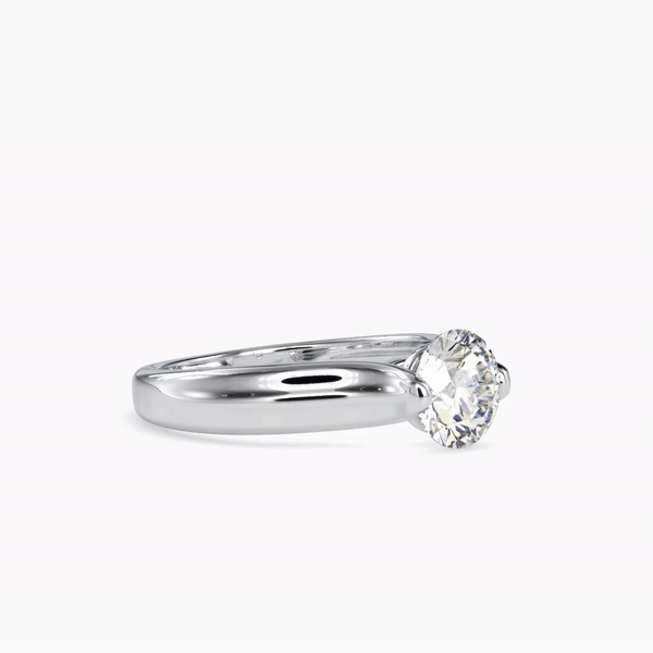 The Round Shape Brilliant Cut Diamond Idiosyncratic Prong Set Solitaire Ring is designed with comfort in mind. The band is ergonomically shaped to ensure a comfortable fit, making it perfect for daily wear or special occasions. Its timeless design guarantees it will become a cherished family heirloom, passed down through generations.