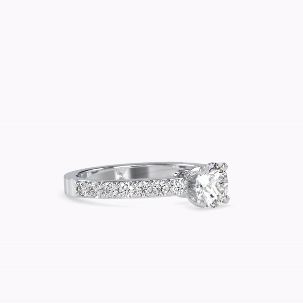 - Round Shape Brilliant Cut Diamond: The central diamond, with its round brilliant cut, ensures maximum brilliance and fire, reflecting light from every angle to create a captivating sparkle.