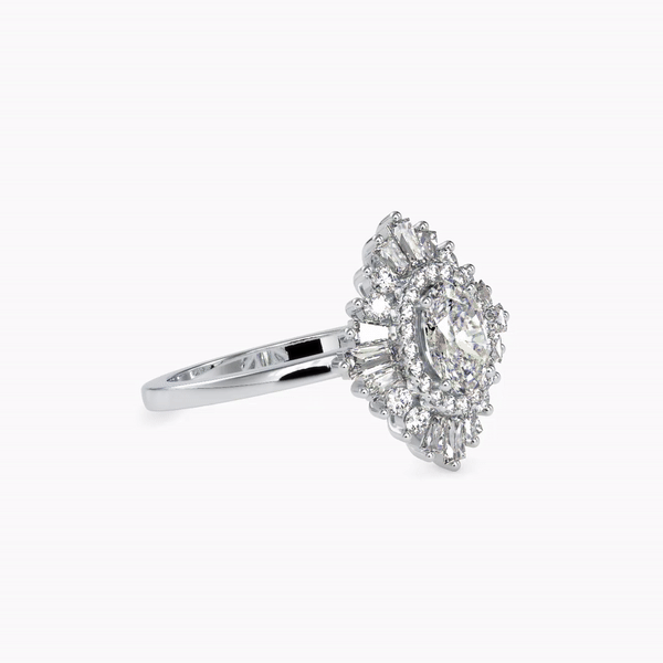 - Oval Shape Brilliant Cut Diamond: The centerpiece of the ring, offering exceptional sparkle and creating an illusion of a larger diamond.